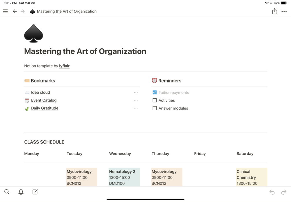 Bookmarks where there is a page for you to write down your thoughts, a gratitude page for you to list down the things you have been grateful for the day, and an event catalog which tracks down your activities and accomplishments. Along with a dedicated page for courses, class and exam schedules and calendar.